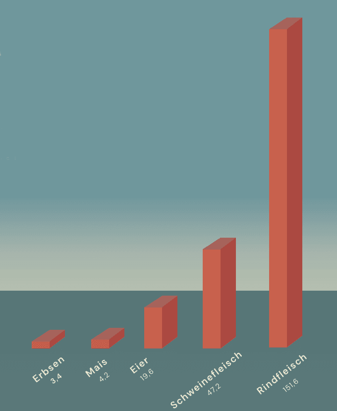 Fleisch, Milch und Eier liefern jedoch nur rund 17 Prozent der weltweiten Kalorienzufuhr. Der Flächenaufwand steht in einem deutlichen Missverhältnis zum Ertrag.